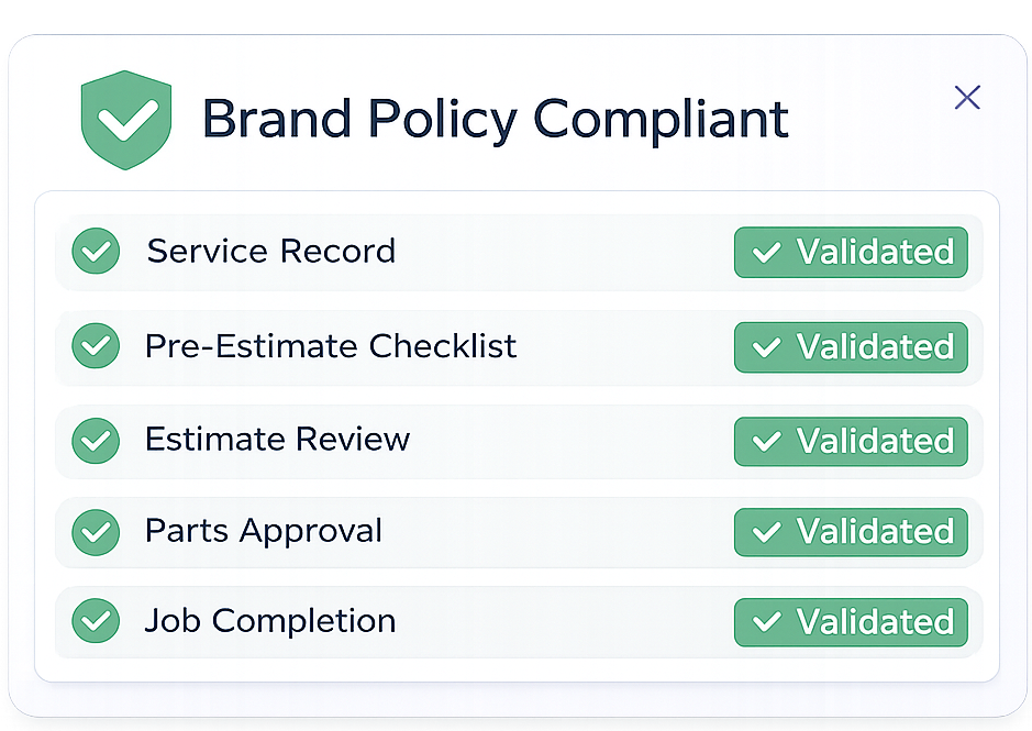 Partner Flow gives service partners structured workflows aligned with brand standards. Clear rules. Faster approvals. Predictable work. Measurable performance.